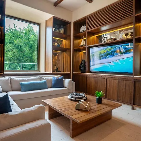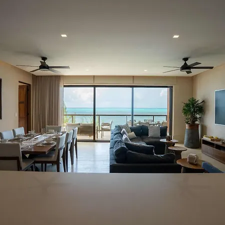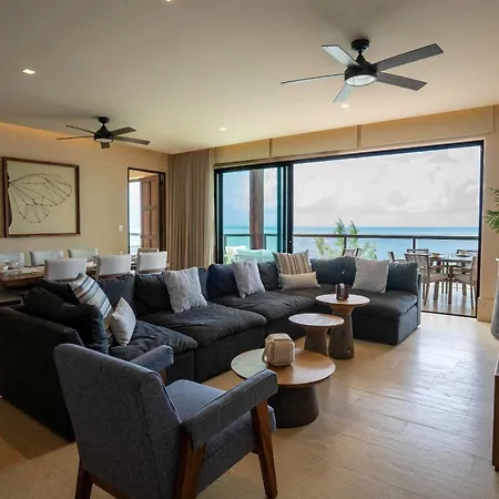 The spacious 3Br Beachfront Elegant Condo -Family Getaway Isla Mujeres includes a patio and is situated a 5-minute walk from Tortugranja Isla Mujeres. Wi-Fi and parking are among the essentials at guests' disposal.